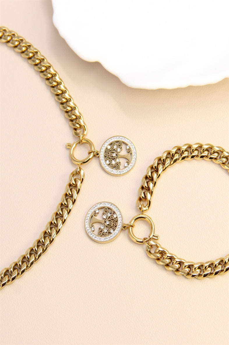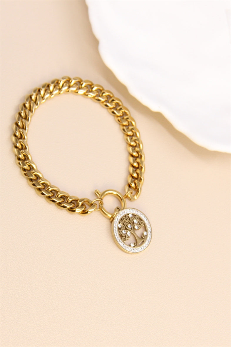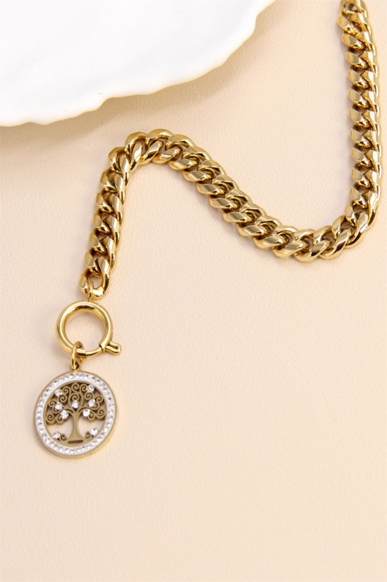 Bracelet grosse maille doré avec pendentif Arbre de Vie – Acier inoxydable